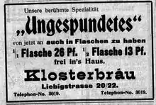 تبلیغی از شرکت سهامی آبجوسازی کلوستا در مونیخ سال ۱۹۰۴