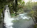 سرچشمه این آبشار دو چشمه جوشان بنام پینارباشی در منطقه کیرک گوزلر در ۴۰ کیلومتری آن است. آب این دو چشمه پس از طی مسیری کوتاه یکی شده و رود دودن را میسازد. دودن پس از طی مسیری ۱۴ کیلومتری از زیرزمین در گودالی بنام وارساک در روی زمین جاری شده و پس از یک جریان کوتاه دوباره در طرف دیگر گودال در اعماق زمین فرومیرود.