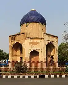 یک گنبد اثر گرفته از ایران در دهلی، هندوستان که کاشیهای به رنگ آبی ایرانی در سطح بیرونی خود دارد.