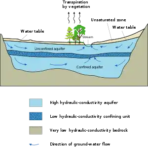 - مشارکتکنندگان ویکیپدیا. «Hydrogeology». در دانشنامهٔ ویکیپدیای انگلیسی، بازبینیشده در ۲۶ آوریل ۲۰۱۵.