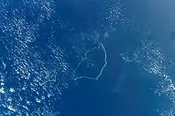 ![]() تصویر ناسا از آبسنگ های حلقوی آئور (چپ) و Maloelap (مرکز) | |