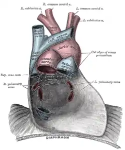 ![]() دیواره پشتی کیسه پریکارد، خطوط بازتاب پریکارد سروزی. | |