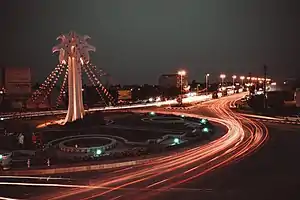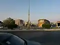 تصویری از ورودی بلوار (خیابان) غدیر در شهر آبپخش که در ورودی آن مجسمه نادم فقید نصب شدهاست. ادامه این خیابان به جاده آبپخش به وحدتیه متصل میشود و تا مسیر ورودی استان بوشهر-فارس ادامه مییابد
