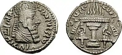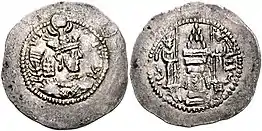 سکهٔ پادشاه ایران هرمز دوم ساسانی و شهبانو ایفراهرمز در کنار دارِمهر نماد اصلی مزدیسنا.