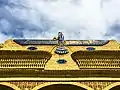 سرستونهای سنگی جلو تالار ساختمان اصلی و سنگهای گلدار پای دیوارها کار هنرمندان اصفهانی است. این هنرمندان سنگها را در اصفهان تراشیده و سپس تا یزد بردهاند. نگار کاشیهای فروهر بر بالای سردر ورودی، کار هنرمندان کاشیکار یزدی است و معماری کل این بنا از معماری آتشکدههای پارسیان تأثیر پذیرفتهاست.