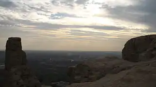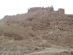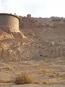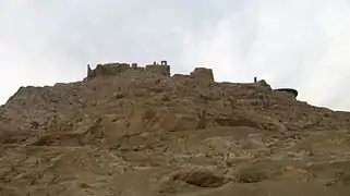 ضلعِ شمالیِ تپه با یک منبعِ آبِ بزرگ که در میانهٔ آن ساخته شده