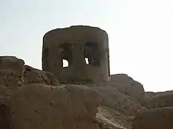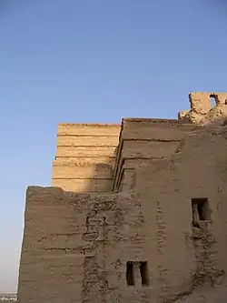 بافتِ ساختمانیِ این مجموعه از لایههای خشتی است. میانِ دو ردیف خشت را هم یک لایه نازکِ نِی (که از رودخانه آورده میشده) قرار میدادند تا بر استحکامِ آن بیفزایند. پایههای بزرگ و خشتیِ بنا تقریباً از میانهٔ تپهٔ آتشگاه آغاز میشوند و در بالا به ستونهایی محکم و قابلِ اعتماد تبدیل میشدند که در گذشته اتاقهایی نیز بر رویِ آنها قرار داشتهاست. در برخی جاها نیز بقایایی از راه پلههایی منظم و کنده شده در دلِ سنگ بچشم میخورد که تا بالا ادامه داشتهاست اما امروزه از میان رفتهاند. در بالای تپه بنایی گِرد ساخته شده که میتوان آن را نقطه نهاییِ معماریِ این بنا معرفی کرد. بر رویِ تپه، هیچ بنایی بلندتر از آن ساخته نشدهاست. این اتاق دارای هشت گوشهاست و در هر گوشه یک پنجره هم رو به بیرون دارد. گفته میشود موبدانِ زرتشتی، آتشِ مقدس را در درونِ این اتاق قرار میدادهاند.[2]