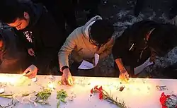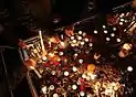 - مردم تهران و دیگر شهرهای ایران نیز با حضور در ایستگاههای آتشنشانی و تقدیم تاج گل و روشن کردن شمع با آتش نشانان و خانوادههای داغدار این حادثه ابراز همدردی کردند.[103][104] همچنین جمعی از مردم و هنرمندان با حضور در محوطهٔ تئاترشهر به یاد آتشنشانهای حادثه ساختمان پلاسکو شمع روشن کردند.[105]