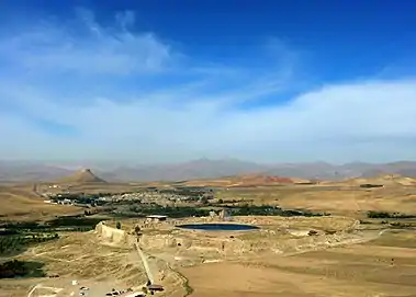 نمایی از دژ کاخا بنا شده بر کوه خواجه در سیستان.