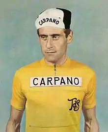 ![]() Moresi in 1961 wearing the تور دوچرخهسواری سوئیس race leader's yellow jersey | |