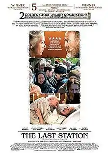 آخرین ایستگاه فیلمی به کارگردانی مایکل هافمن بر پایه رمانی از جی پرینی، نویسنده آمریکایی ساخته شده که از دفترچه خاطرات سوفیا آندریونا، همسر تولستوی نیز استفاده شدهاست.[1][2]