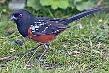 - مشارکتکنندگان ویکیپدیا. «Spotted towhee». در دانشنامهٔ ویکیپدیای انگلیسی، بازبینیشده در ۲۰ اوت ۲۰۱۴.