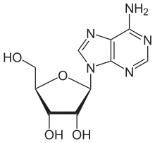 آدنوزین نوکلئوزید پورینی است که از اتصال آدنین به قند ریبوز ساخته میشود.آدنوزین با پیوندهای فسفاته مانند ATP و ADP نقش بسیار مهمی در چرخه انرژی سلولی دارد، همچنین ترکیباتی مانند cAMP نقش بسیار مهمی در انتقال پیام و تنظیم عملکردهای سلولی دارند.