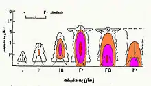 - تودهای متراکم ایجاد میشود(منطقهٔ رنگی) و رادار بالای زمین بازتابی را دریافت میکند.