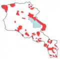پراکنش جمعیتی آذربایجانیهای ارمنستان در دوران شوروی به سال ۱۹۶۲.