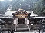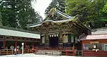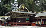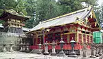 | Honden, Ishinoma, Haiden | Honden: Building enshrining the deified image of توکوگاوا ایهیاسو, Tōshō Daigongen. Ishinoma: Chamber connecting Honden and Haiden. Haiden: Worship hall. |