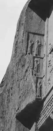 درست در زیر آرامگاه داریوش، دو سنگتراشی بزرگ از دورهٔ ساسانی قرار دارد که هر دو، نبرد شهریارانی اسبسوار را نشان میدهد که دشمنان خود را نگونسار کردهاند. نقش پایانی احتمالاً و نقش بالایی به قطعیت، از آن بهرام دوم شاه ساسانی است.[19]