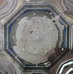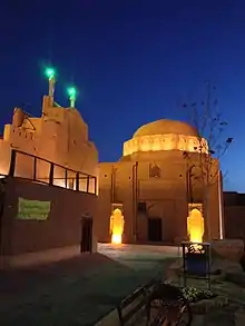 ۳- کتیبه کوفی از رنگ بر سر درگاه نمای شرقی آیه ۶۵ سوره الغافر {المومن} مباشد که بعد از {الا هو}ریخته ومحو است؛ و همچنین از زیر چند لایه گچ یکی از قدیمترین آثار گچ بری و زیباترین آثار به جا مانده در دنیا متجلی و در برابر دید عموم قرار گرفته