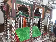 روبروی آرامگاه صفحهای به بلندی یک متر و چهار پله قرار دارد که بر روی آن آرامگاه واقع شدهاست. در قسمت شرقی صفحه آرامگاه (آرامگاه) یک پیشخوان با سقف تیرهای چوبی و حصیری و چند ستون چوبی است. که با پنج پله به حیاط متصل میشود.