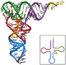 tRNA یا آر ان ای ناقل یکی از انواع آر ان ایهای موجود در سلول میباشد که حمل آمینواسیدها به ریبوزومهای موجود در سیتوپلاسم (بدون در نظر گرفتن هسته) بر عهدهٔ آن است.tRNA در سلول شکل L مانند دارد ولی اگر آن را در خارج از سلول زنده و به وسیلهٔ تجهیزات پیشرفته بررسی کنیم شکل آن را به صورت برگ گیاه شبدر خواهیم دید. دلیل ایجاد این شکل وجود پیوندهای هیدروژنی در بعضی قسمتها و نبود این پیوند در بعضی قسمتهای دیگر است. در این ساختار برگ شبدری برگهای جانبی وظیفهٔ نگهداری tRNA را بر روی ریبوزوم بر عهده دارند. در برگ میانی سه باز دیده میشود که با هیچ باز دیگری از tRNA مکمل نشدهاند. به این سه باز آنتی کدون گفته میشود. در واقع نوع آنتی کدون است که مشخص میکند tRNA باید چه نوع آمینواسیدی را با خود حمل کند. هر یک از بیست نوع آمینواسیدها برای خود یک یا بیشتر کد (رمز) بر روی DNA دارد. در نتیجه بر روی mRNA نیز هر یک از آمینواسیدها یک یا بیشتر کدون (رمزه روی mRNA) دارد(۶۴ نوع). ولی تعداد انواع tRNAها ۶۱ عدد میباشد. این کاهش تعداد به دلیل وجود کدونهای پایان بر روی mRNA میباشد که این کدونها هیچ مکملی (آنتی کدون) ندارند.وظیفه این نوع از RNA ترجمه اطلاعاتی است که از DNA به طرف ریبوزم میرود.در واقع الگوی اطلاعات DNA را به الگوی آمینو اسید های سازنده پروتئین تبدیل میکند.