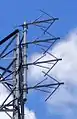 آنتن های قطاعی (میله های سفید) در برج تلفن همراه. آرایه های دوقطبی همخطی، که یک پرتو هموار و بادبزنی مانند را تابش میکند.