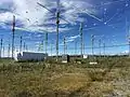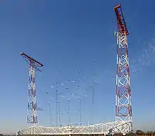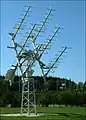 Curtain array shortwave transmitting antenna, Austria. Wire dipoles suspended between towers