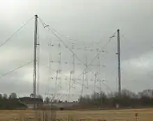 با فاصله نصف طول موج از زمین و یک بازتابنده صاف در پشت آن، جهت بیم میتواند هدایت شود. HRS 4/4/0.5 آنتن قابل هدایت با ۱۶ آنتن دایپل یکی از انواع استاندارد آنتنهای آرایه ای است که در ایستگاههای پخش سیار در سراسر جهان دیده میشود.