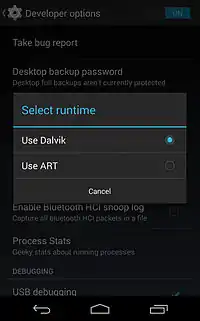 - Stephen Shankland (نوامبر ۷, ۲۰۱۳). «Google tests ART foundation in KitKat for faster Android apps». cnet.