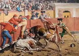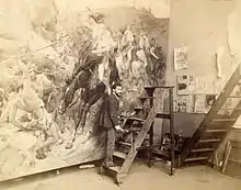 ![]() آرتورو میچلنا در کارگاه نقاشیاش در بین سالهای ۱۸۸۵ تا ۱۸۹۰ میلادی. | |