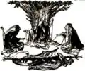 آلبریش در حال صحبت با هاگن. تصویرگری برای حلقهٔ ریچارد واگنر (۱۹۱۲)