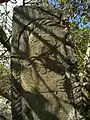 Stone pillar set on a plinth with a carving of a woman (possibly S. Astvatsatsin) adjacent to the church