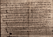 ![]() نیمه پایینی یکی از پاپیروسهای فیل، حاوی یک درخواست برای بازسازی معبد یهودی در الفانتین، و به تاریخ سال هفدهم پادشاه داریوش دوم، تحت حکمرانی آرشام (۴٠٧ پ. م) [1] | |