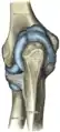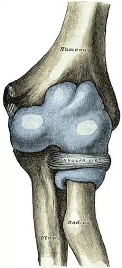 مفصل آرنج چپ، زردپیهای کناری زند زبرین و پسین نیز در تصویر دیده میشود.