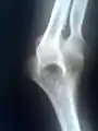 همجوشی آسیبشناختی سه استخوان در محل آرنج.