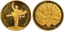 نشان یادبود انقلاب سفید با لقب آریامهر در کنار عنوان شاه؛ ۱۳۴۱ خورشیدی