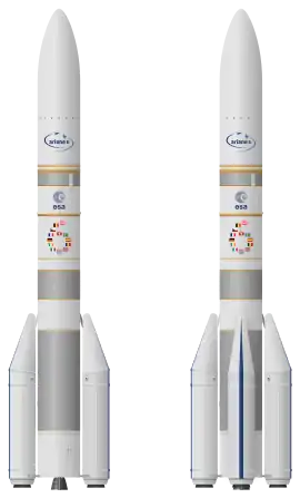 ![]() Illustration of the two Ariane 6 variants planned, A62 (left) and A64 (right) | |