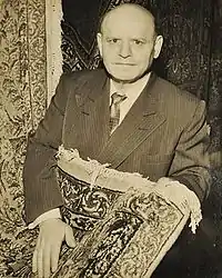 ![]() Aris Alexanian, with oriental rug | |