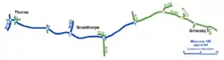 این آزادراه که از شهر استاینفورث شروع میشود، ۴۰.۲ کیلومتر (۲۵ مایل) مسافت دارد و از شهرهای مهمی مانند اسکانثورپ عبور میکند.