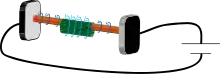 در این روش جریان الکتریکی به صورت مستقیم از قطعه عبور می کند.با عبور این جریان آمپر بالا،درون و بیرون قطعه میدان مغناطیسی حلقوی به وجود می آید.هم زمان با عبور جریان الکتریکی،ذرات مغناطیسی بر روی قطعه پاشیده می شوند و در محل ترک تجمع می کنند.در این روش تنها ترک های طولی قابل شناسایی هستند.از دیگر معایب این روش آن است که اگر اتصالات به درستی صورت نگیرد سبب ایجاد پدیده قوس الکتریکی می شود.در نتیجه به دلیل حرارت بسیار بالا ذرات آهن در حالت آستنیت قرار می گیرند و سپس به دلیل سرد شدن سریع در هوا،استحاله مارتنزیتی صورت می گیرد. چنین اتفاقی سبب تغییر ریز ساختار قطعه و در نتیجه تغییر خواص مکانیکی می شود.چنین اتفاقی در فولادهایی با بیش از 0.3% کربن اتفاق می افتد.[3]