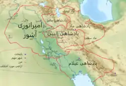 ![]() نقشهٔ امپراتوری آشور و متصرفاتش | |||||||||||||