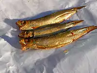 ماهی انگشتی غذایی محبوب است که با ماهی سفید مانند ماهی روغن، روغنماهی کوچک، زغالماهی، با خمیرابه و آرد سوخاری پخته میشود.