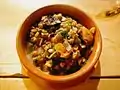 شیرینی که با میوههای خشک با کمی جو و بادام خرد شده با گردو تهیه شدهاست.