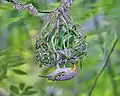 مرغ ژوئیه روستایی در حال بافتن آشیانه