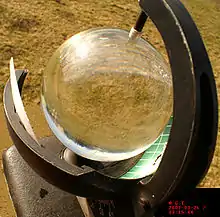 این وسیله تشکیل شده از یک گوی شیشهای که عملکردی مانند ذرهبین دارد و پرتو آفتاب را روی صفحهای که در پشت آن قرار دارد متمرکز میکند. محفظه شیشهای کروی محتوی آب است که خود محفظه در داخل یک کاسه چوبی قرار دارد محفظه پرتوهای نورانی خورشید را شبیه به یک عدسی جمع کرده و روی جدار داخلی کاسه چوبی میاندازد چوب در اثر پرتو متمرکز شده و گرمای بهدستآمده از خورشید سوخته و بتدریج خطی در روی جداره چوب کشیده میشود.
