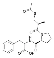 | (2S)-2-([(2S)-1-[(2S)-3-acetylsulfanyl-2-methylpropanoyl]pyrrolidine-2-carbonyl]amino)-3-phenylpropanoic acid | |