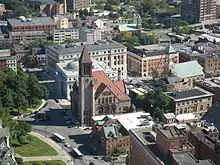 ![]() در جهت ساعت از بالا: افق آلبانی از رنسلیر، نیویورک; طبقه متوسط housing در محله هلدربرگ; تئاتر پلس; امپایر استیا پلازا از مرکز آموزش فرهنگی; North Pearl Street در خیابان کلمبیا; و the State Quad در دانشگاه ایالتی نیویورک در آلبانی. | |||