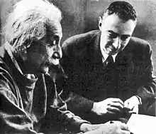 - J. Robert Oppenheimer (1971). Lecture delivered at the UNESCO House in Paris on 13 December 1965. "On Albert Einstein". Science and Synthesis: An International Colloquium Organized by Unesco on the Tenth Anniversary of the Death of Albert Einstein and Teilhard de Chardin: 8–12, 208.، or "On Albert Einstein by Robert Oppenheimer". The New York Review of Books. 17 March 1966.