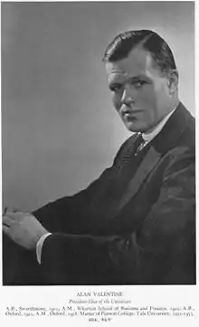 آلن والنتین (انگلیسی: Alan Valentine; ۲۳ فوریهٔ ۱۹۰۱ – ۱۴ ژوئیه ۱۹۸۰ ) بازیکن راگبی ۱۵ نفره، نویسنده و رئیس دانشگاه راچستر اهل ایالات متحده آمریکا بود.