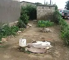 میزان حذف پاتوژن، بسته به نوع خاک، نوع سفره آب، مسافت و سایر عوامل محیطی به شدت متفاوت است.[25] به عنوان مثال، دوره طولانی بارانهای شدید در مناطق با خاک غیر اشباع، باعث «شسته شدن» خاک شده و مسیر هیدرولیک را برای عبور سریع پاتوژنها فراهم میکند.[1] تخمین فاصله لازم بین توالت گودالی یا مخزن سپتیک با منبع آب، برای ایمنی منبع آب از آلوده شدن دشوار است. در هر صورت، رعایت چنین توصیههایی در مورد فاصله ایمن، بیشتر توسط ساختمانهای دارای توالت گودالی نادیده گرفته میشود. علاوه بر این، ساختمانهای مسکونی از ابعاد محدودی برخوردار هستند و به همین دلیل، توالتهای گودالی معمولاً بسیار نزدیک تربه چاههای آب زیرزمینی ساخته شدهاند تا حدی که نمیتوان فاصله آنها را ایمن دانست. این امر باعث آلودگی آبهای زیرزمینی میشود و اعضای خانواده هنگام استفاده از این آب زیرزمینی به عنوان منبع آب آشامیدنی بیمار میشوند.