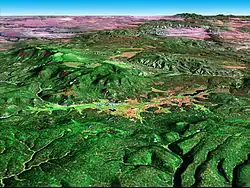 ![]() Alpine (center of image); Luna Lake, right center. ناسا perspective image created by joining لندست ۷ and مدل رقومی ارتفاع data. | |